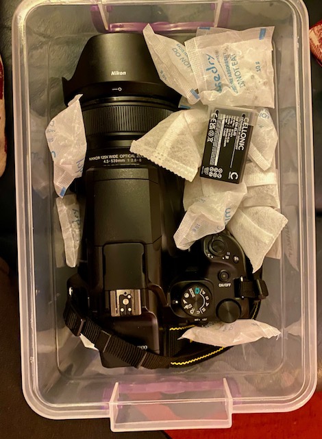 Neither camera is weather sealed either so you have to be careful protecting them from the elements. You can however make them fog proof by storing them in an airtight Tupperware container filled with silica gel desiccant. If there is a chance of rain I will usually bring an ordinary plastic bag with me to cover the camera body.