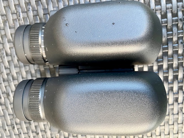 The focus wheel is disproportionately large, making it very easy to manoeuvre using one or two fingers. While there is some inertia getting it moving , focusing is very precise with no free play. This is an improvement over their entry-level model, the Trinovid HD 8 x 32, the focus wheel of which had a small amount of free play. Just over one full revolution clockwise brings you from closest focus to a little bit beyond infinity. The dioptre compensation is accessed by pulling up the top part of the focus wheel, turning the wheel and pushing it back in.
