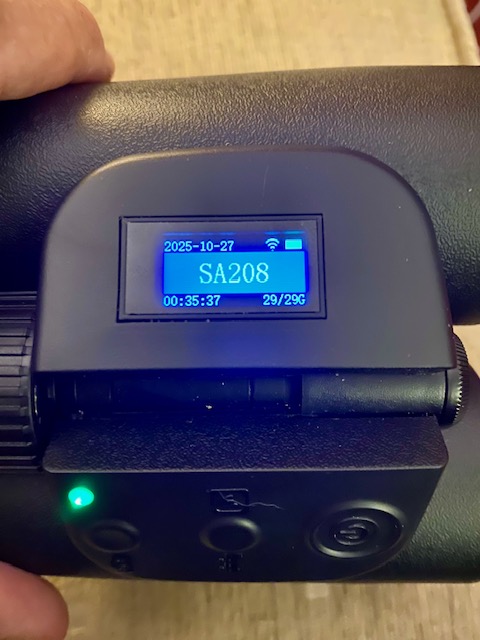 The binocular has a LCD screen on the top of the instrument displaying important information including battery power status as well as Wifi connectivity.